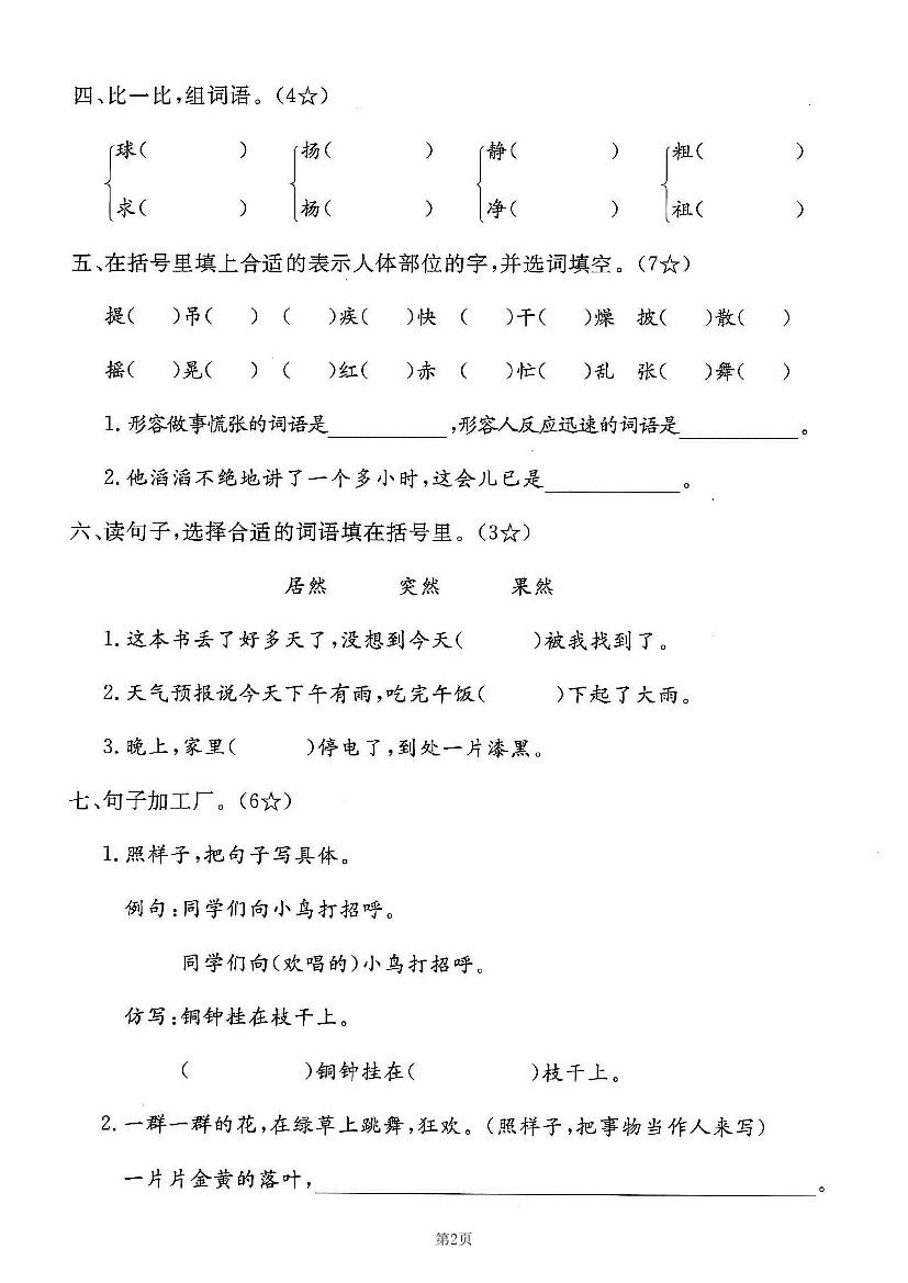 小学 【25学年三上语文第一单元素养评估卷(含答案7页)
