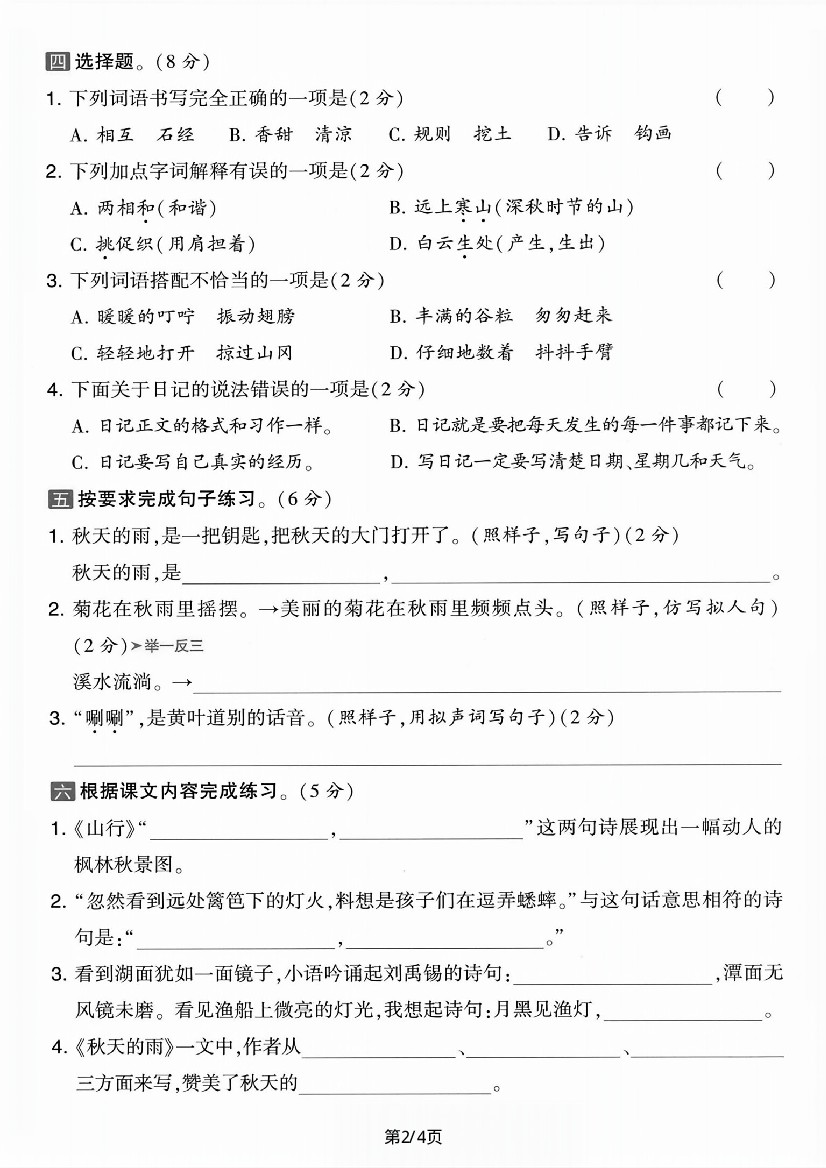 25年三年级上册语文第二单元拔尖检测卷-凌乱