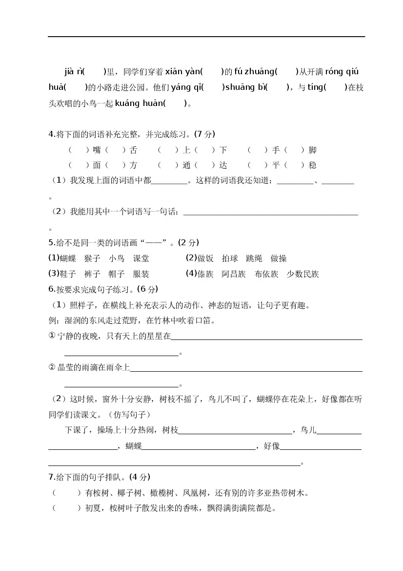 小学 25秋新三年级上册语文第一单元 校园生活(单元检测·基础卷)(新教材)