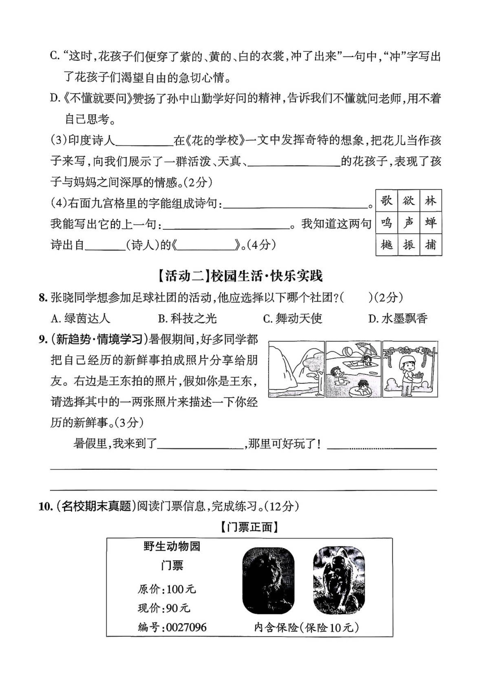 首页 > 全部 > 单元测试 > 三年级上册语文情境素养卷