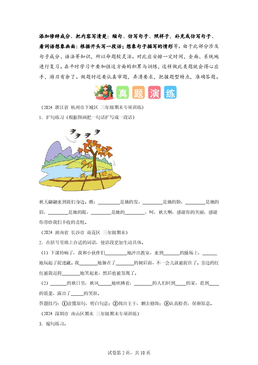 首页 > 全部 > 假期练习 > 专题03 扩句、缩句-2025年三年级语文寒假专项提升(统编版)