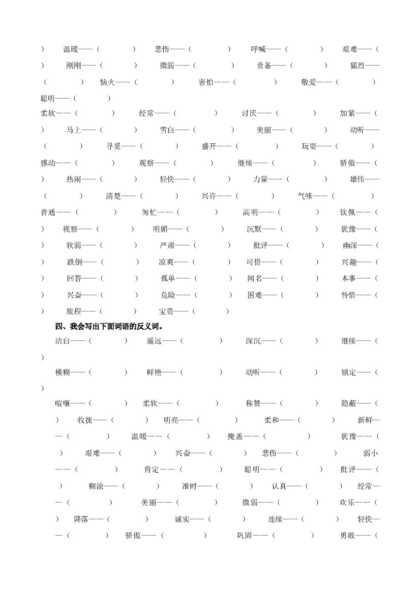 五四制语文3年级上 词语专项
