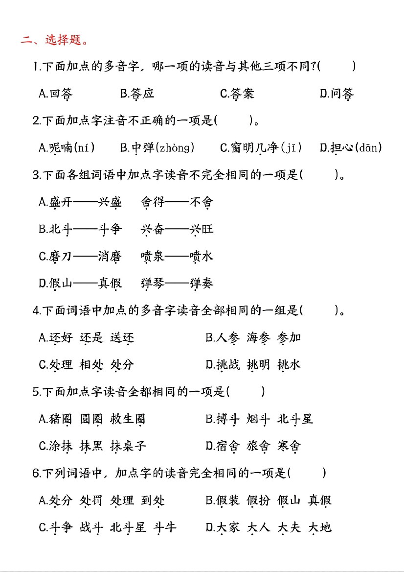 首页 > 全部 > 基础读写 > 三年级(上)语文多音字专项练习