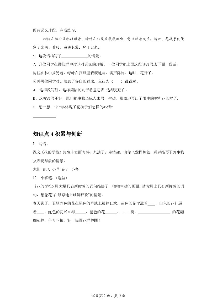 小学 25年秋【三上语文】第2课 花的学校(第一课时)课后作业(提升)