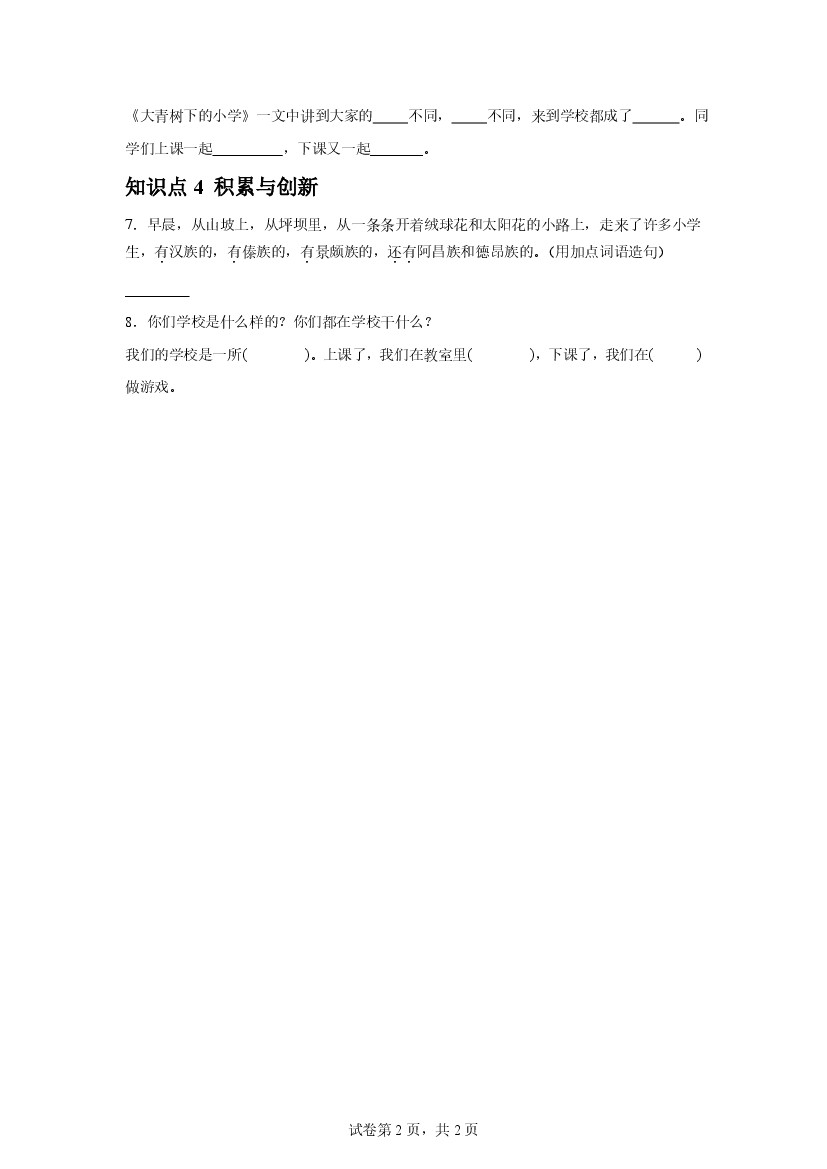 首页 > 全部 > 课时练习 > 25年秋【三上语文】第1课 大青树下的小学(第一课时)课后作业(基础)