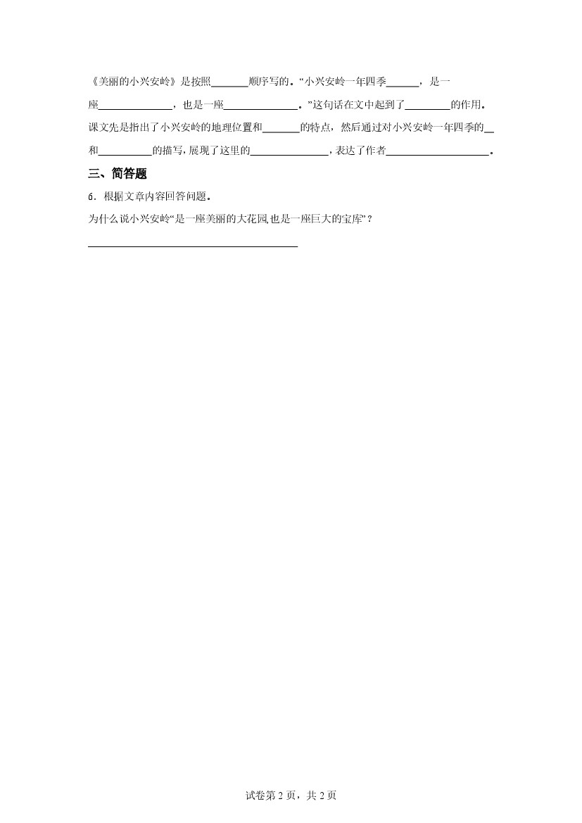小学 25年秋【三上语文】第18课 美丽的小兴安岭(第二课时)随堂检测