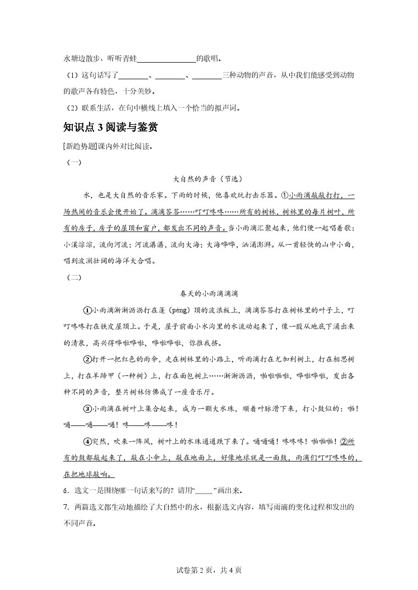 25年秋【三上语文】第21课 大自然的声音(第二课时)课后作业(提升)