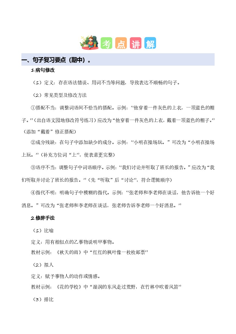 首页 > 全部 > 期中专项 > 三年级(上)语文 专题 03 病句、修辞、说明方法、理解、排序(期中专项训练)