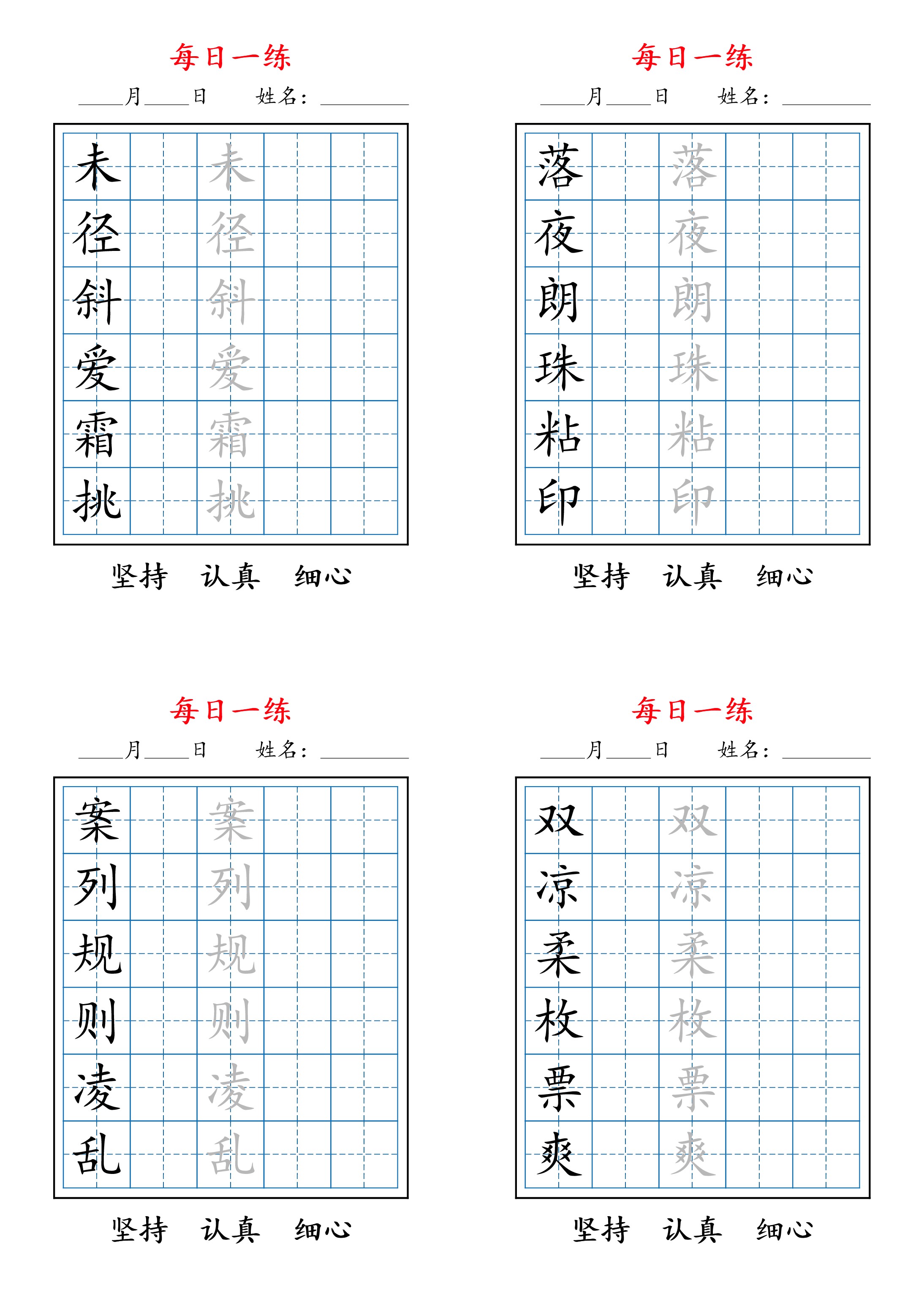 2025秋新三上语文暑假每日一练字帖6字