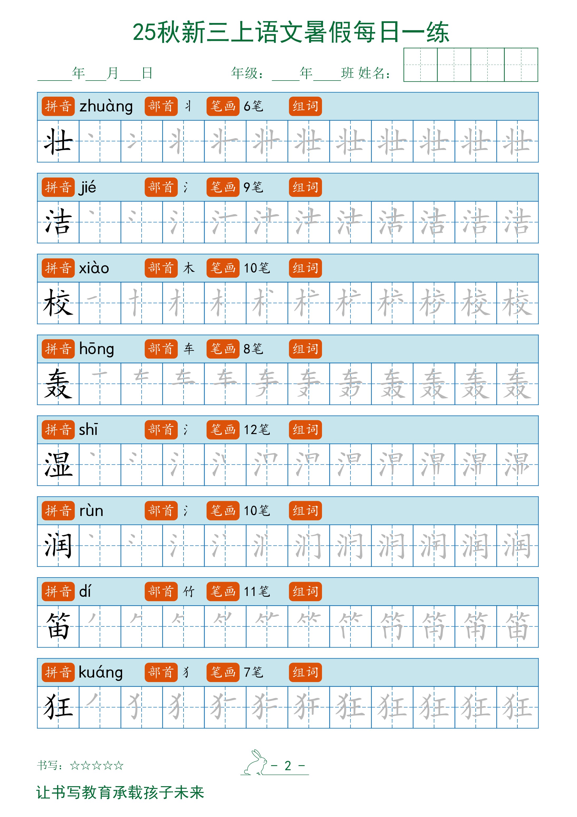 首页 > 全部 > 生字字帖 > 2025秋新三上语文暑假每日一练字帖