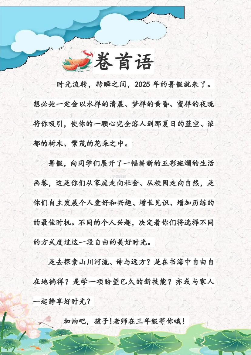【2025暑假】二升三哪吒2025新款语文-缤纷盛夏【14页】【高清无水印直接可打印】