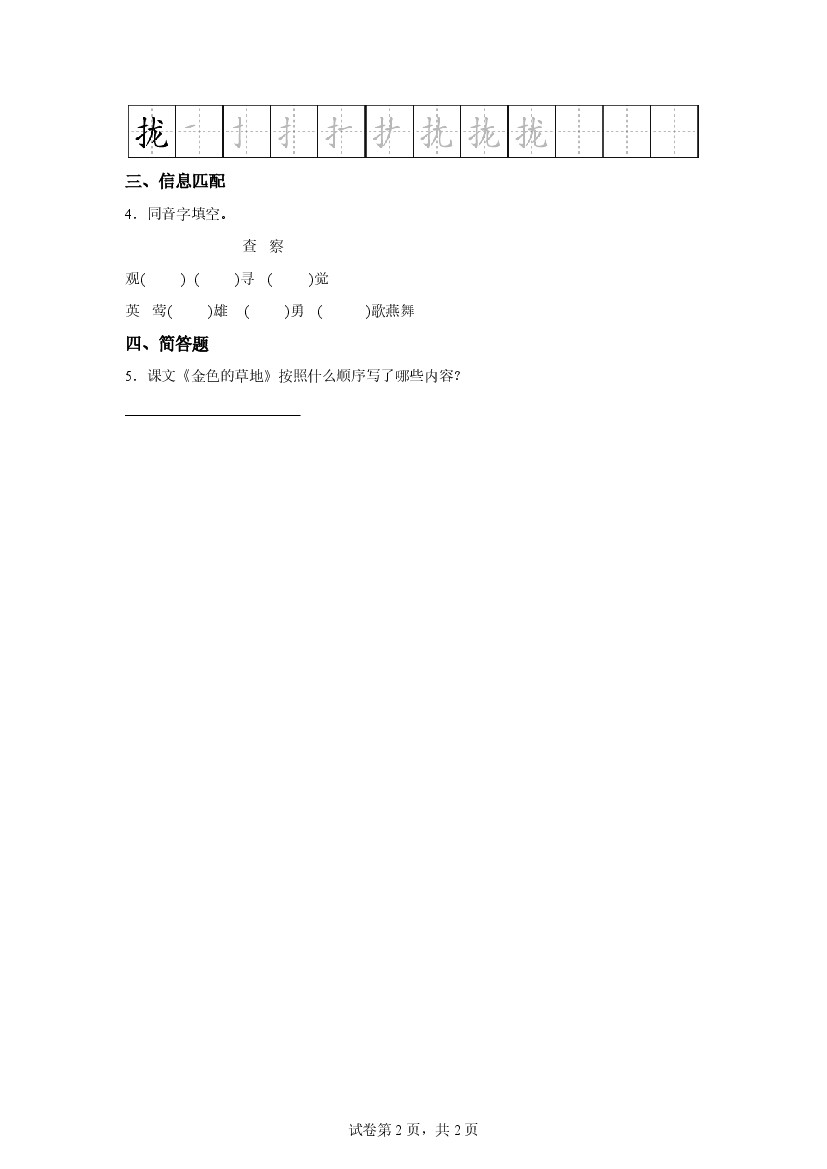 小学 25年秋【三上语文】第15课 金色的草地课前预习