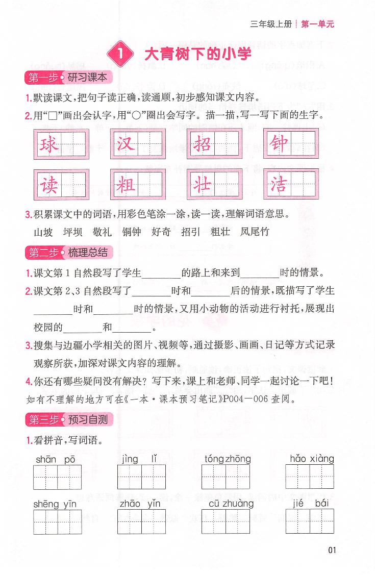 小学 三年级语文人教版上册25秋《课本预习笔记》预习单