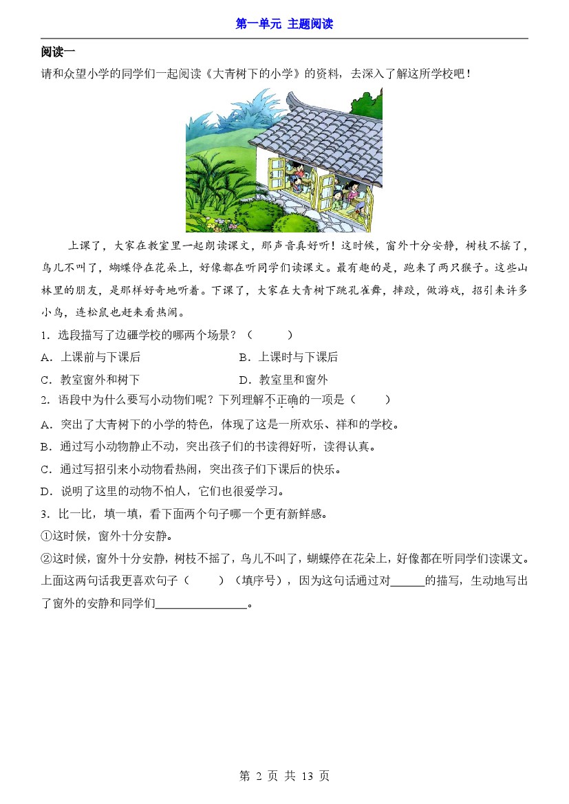 首页 > 全部 > 阅读理解 > 25秋【三上语文】单元主题阅读-第1单元(主题阅读)