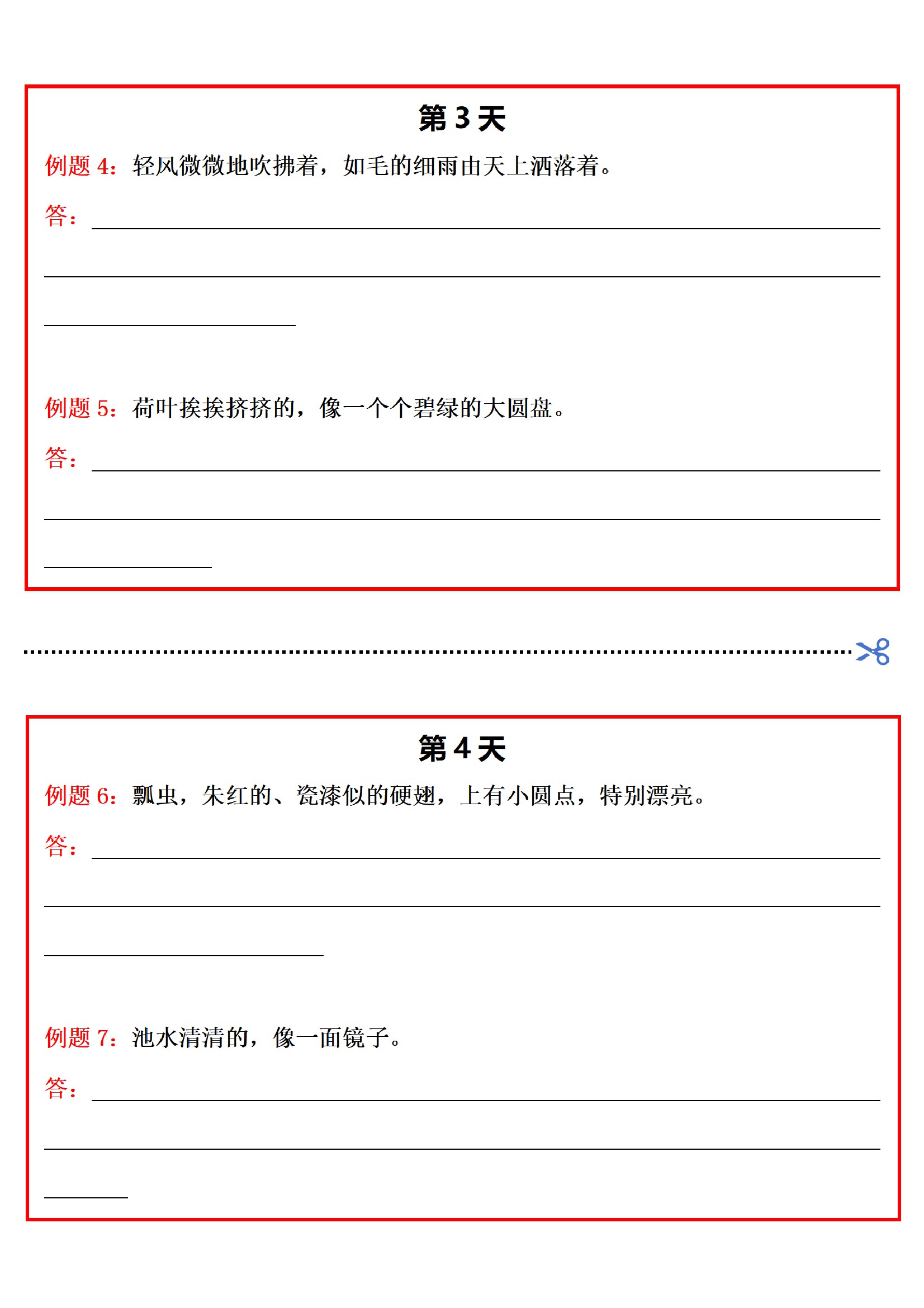 小学 三上语文阅读理解每日一练小纸条(修辞手法篇)
