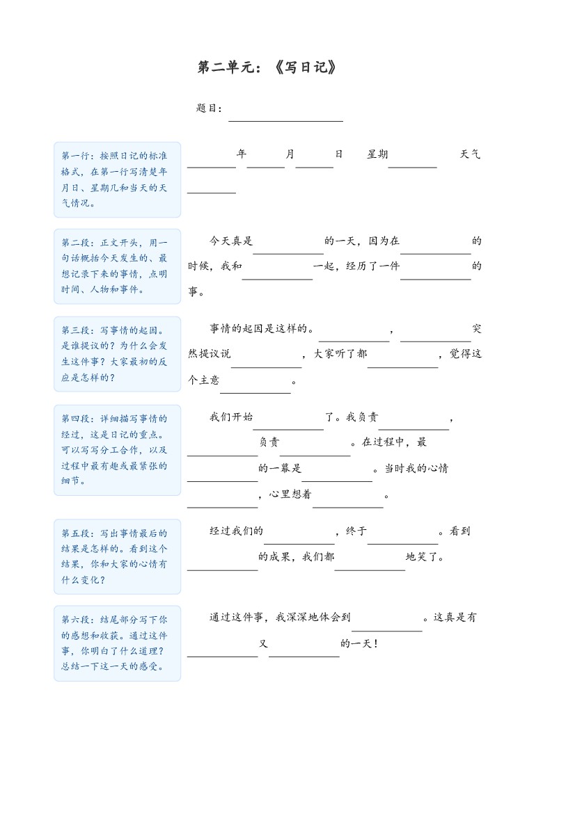 首页 > 全部 > 作文天地 > 三年级上册同步作文填空式写作指导