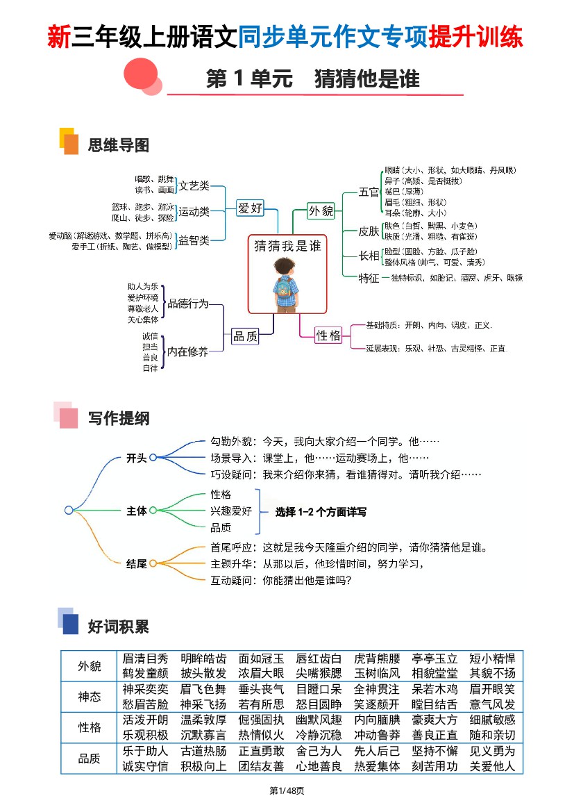 新三上语文同步单元作文专项提升训练(答案版48页)
