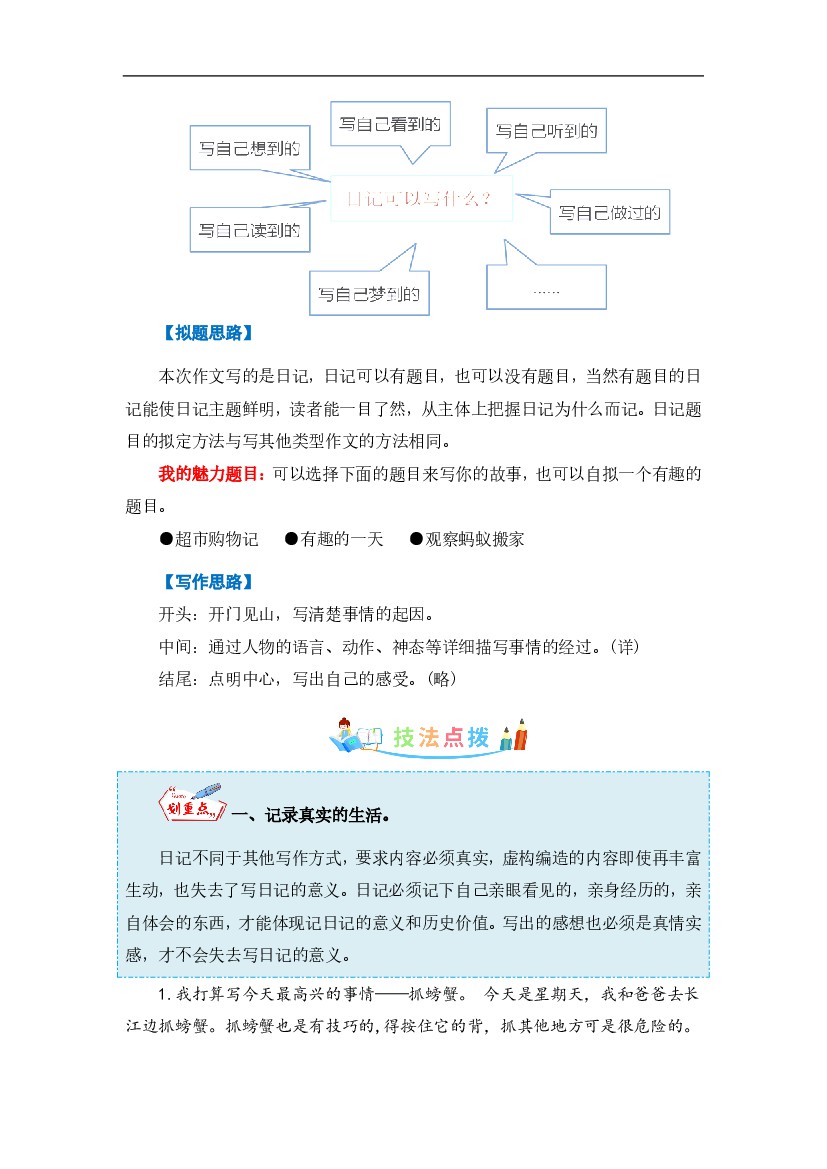 人教部编版三年级语文上册第2单元同步作文:写日记-写作指导+范文赏析+病文升格-部编版语文三年级上册