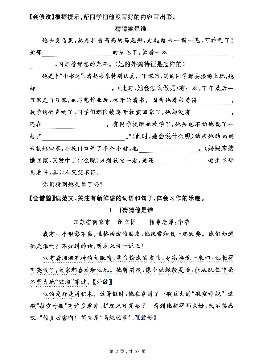 首页 > 全部 > 作文天地 > 25新三年级上册语文《1-8单元同步作文导学单》(含答案33页)