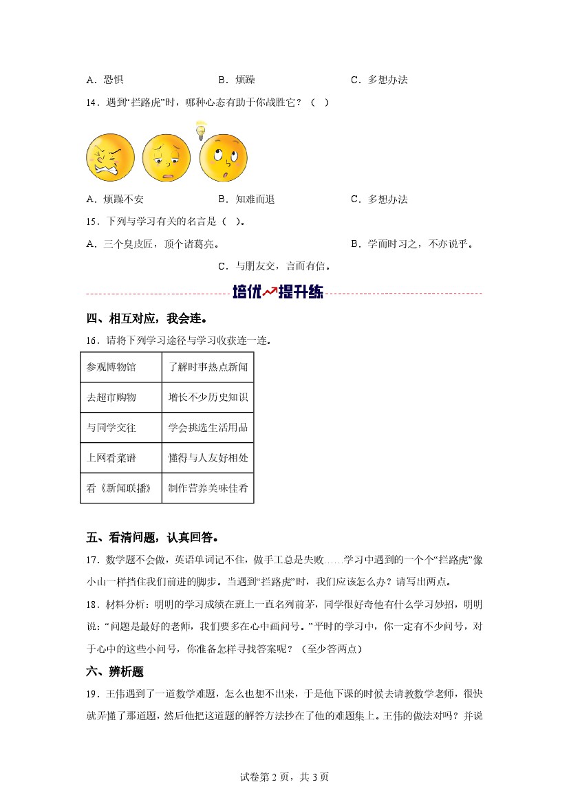 首页 > 全部 > 课时练习 > 统编版道德与法治三年级上册2 我学习我快乐分层作业卷