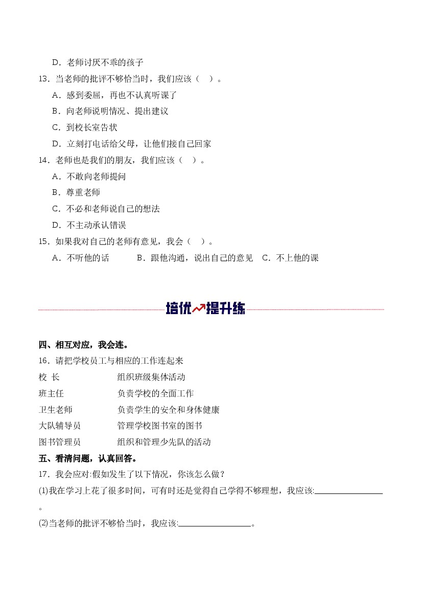 首页 > 全部 > 课时练习 > 25秋三年级上册道法同步练习第7课 走进我们的引路人(学生版)