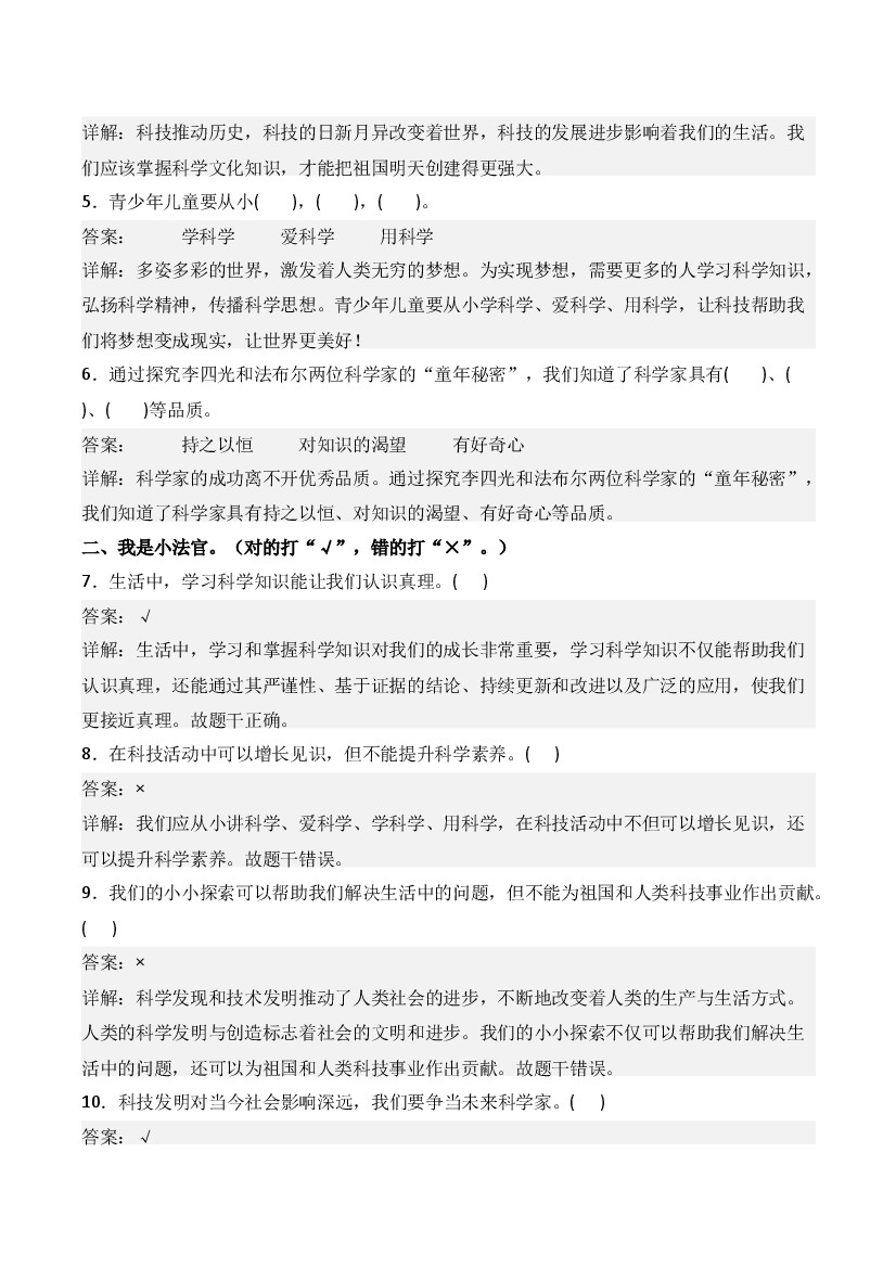 首页 > 全部 > 课时练习 > 25秋三年级上册道法同步练习第6课 争做未来科学家(教师版)