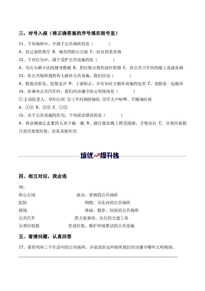 首页 > 全部 > 课时练习 > 25秋三年级上册道法同步练习第10课 公共场所的文明素养(学生版)