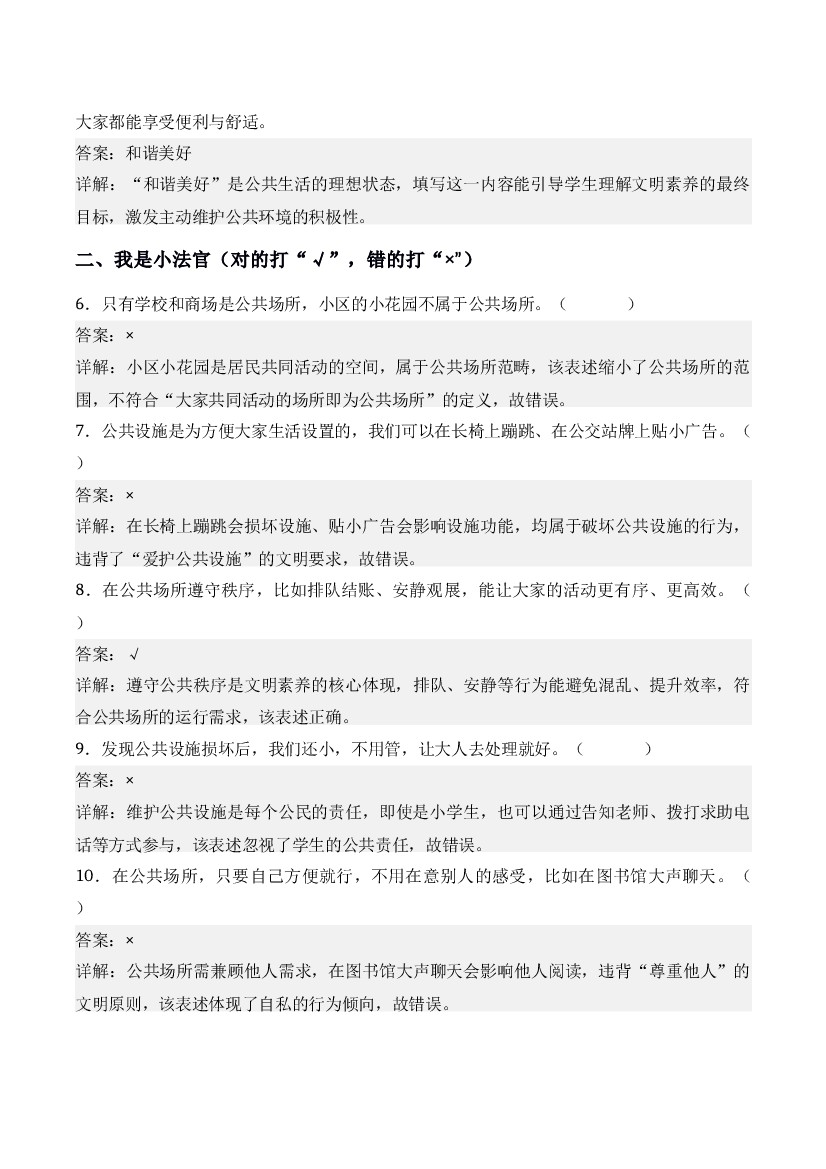小学 25秋三年级上册道法同步练习第10课 公共场所的文明素养(教师版)