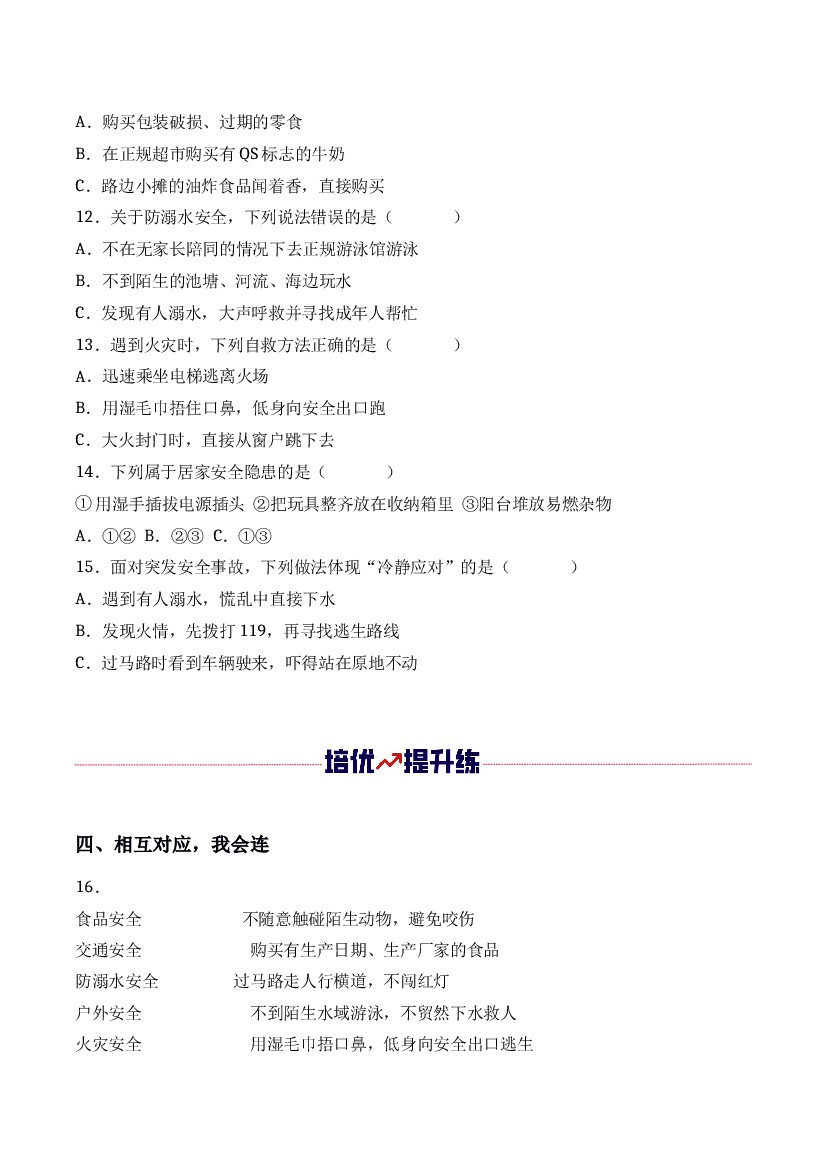 首页 > 全部 > 课时练习 > 25秋三年级上册道法同步练习第13课 安全记心上(学生版)