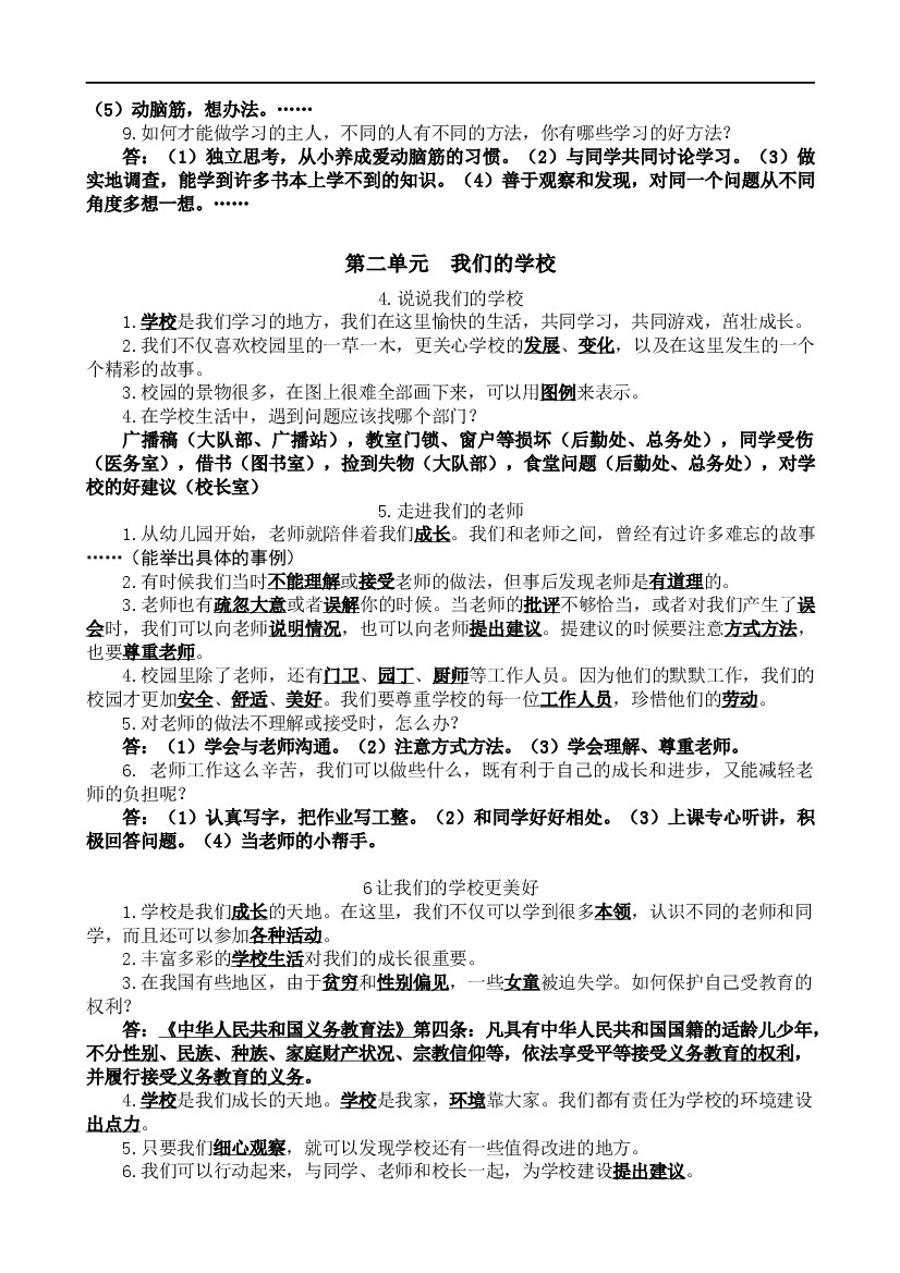 【道德与法治知识点】新编统编版道德与法治三年级上册知识点梳理(全册)
