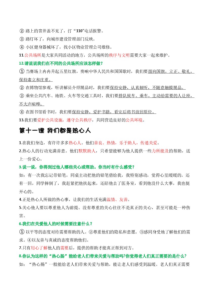 【知识点】25秋三年级上册道法第四单元公共生活靠大家(知识清单)(新教材)
