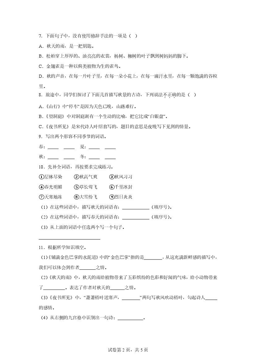 首页 > 全部 > 知识要点 > 25年秋【三上语文】第2单元——重难点专项