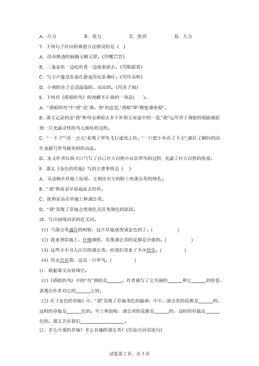 首页 > 全部 > 知识要点 > 25年秋【三上语文】第5单元——重难点专项