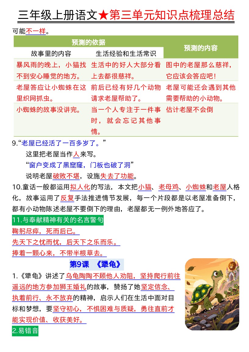 小学 三年级上册语文★第三单元知识点梳理总结.