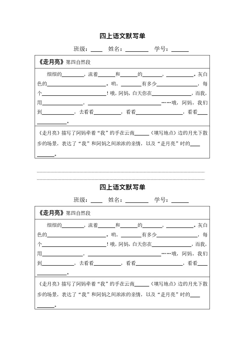 小学 【四上语文】默写-【全册默写单】