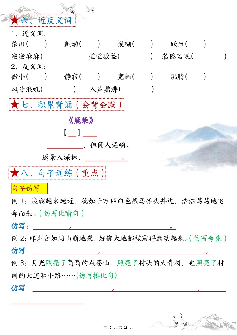 首页 > 全部 > 晨读晚默 > 【四上语文】1-8单元考点默写【练习版】4上