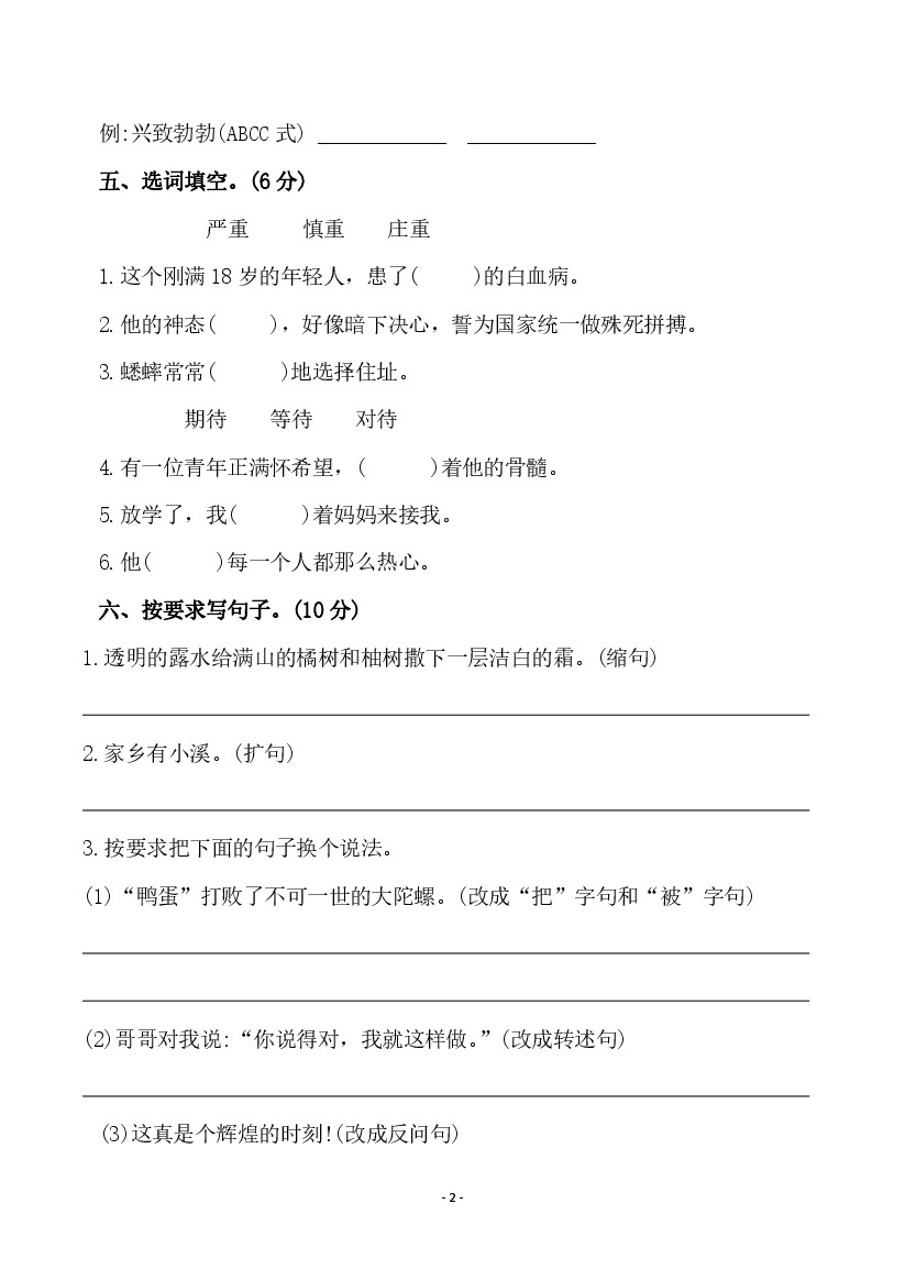 首页 > 全部 > 单元测试 > 四(上)语文第六单元检测试卷(一)