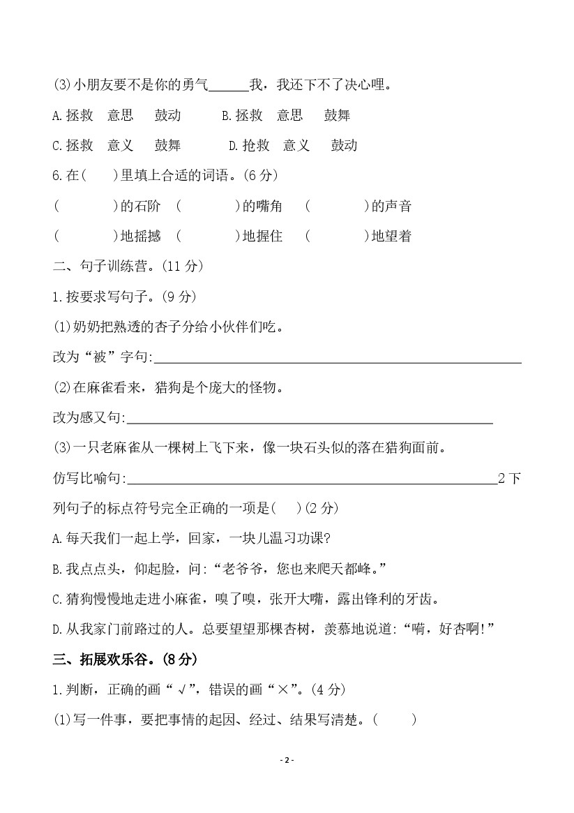 首页 > 全部 > 单元测试 > 四(上)语文第五单元检测试卷(二)