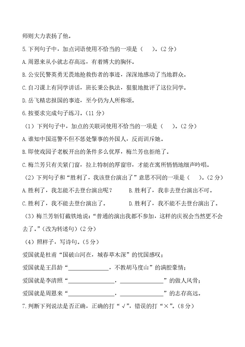 首页 > 全部 > 单元测试 > 四(上)语文第七单元检测试卷(一)