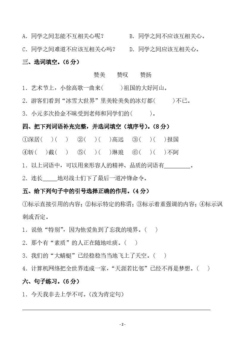 首页 > 全部 > 单元测试 > 四(上)语文第七单元检测试卷(二)
