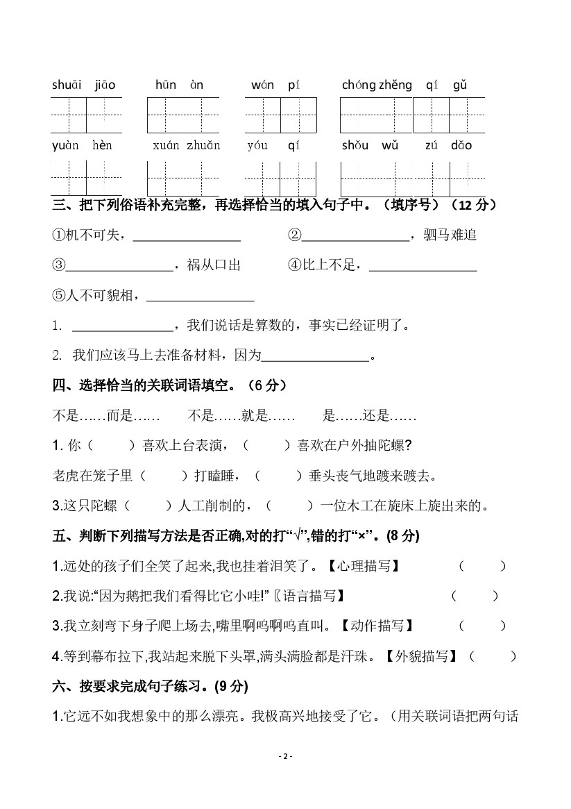 首页 > 全部 > 单元测试 > 四(上)语文第六单元检测试卷(三)