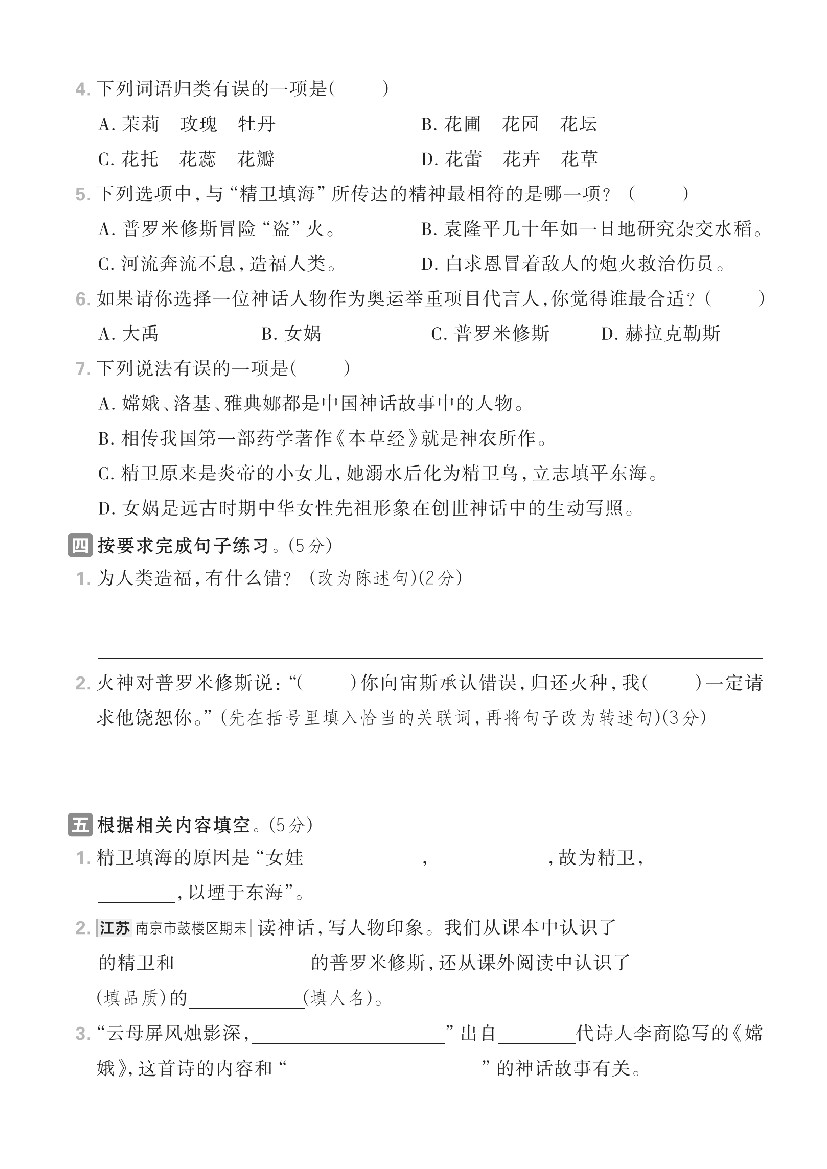 四年级(上)语文第四单元情境测试卷