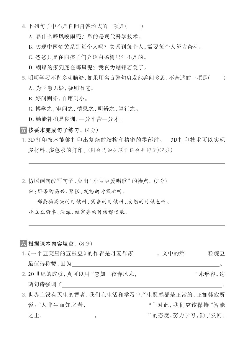 小学 四年级(上)语文第二单元情境测试卷(4)