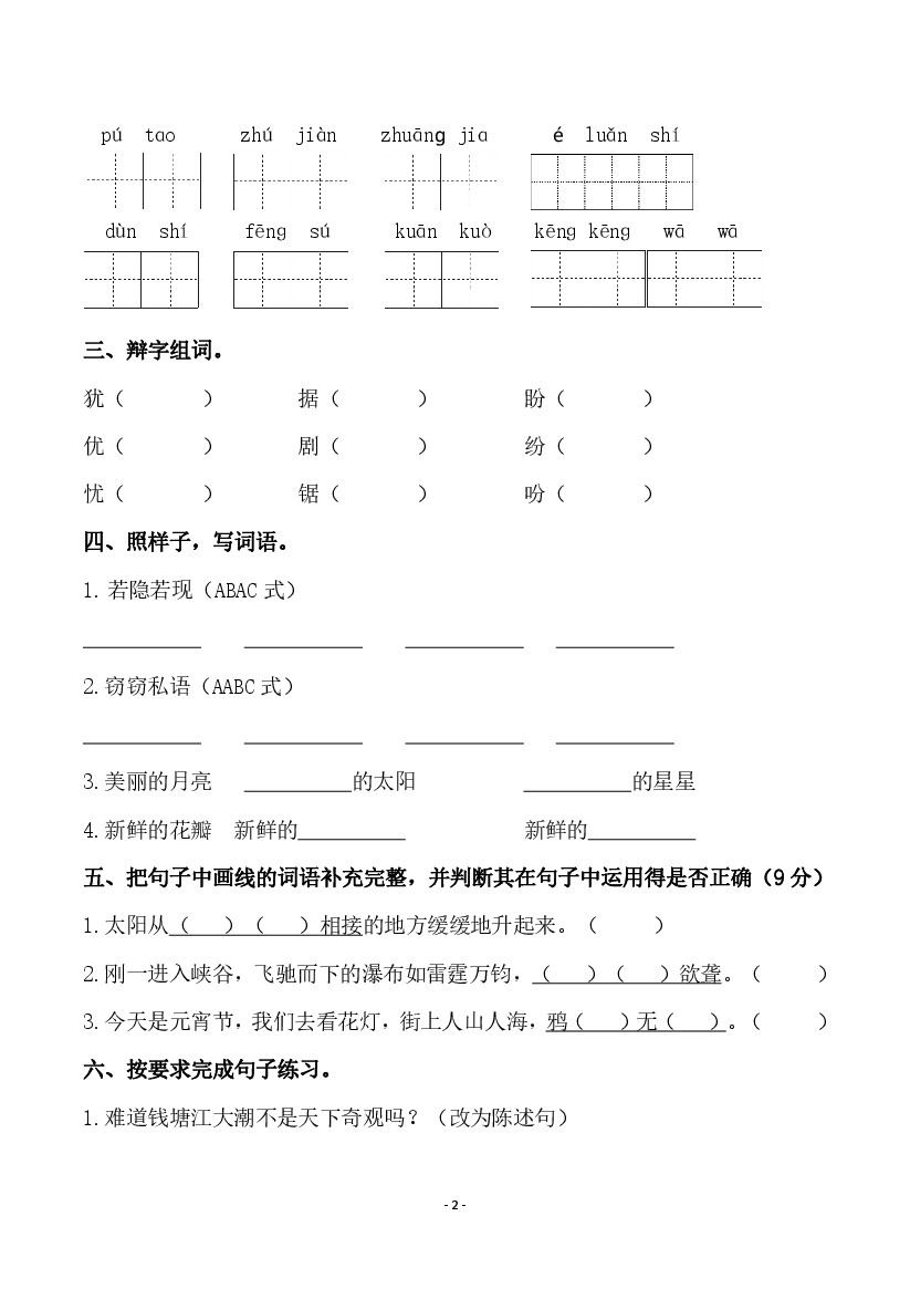 首页 > 全部 > 单元测试 > 【语文】四上第一单元检测试卷(二)