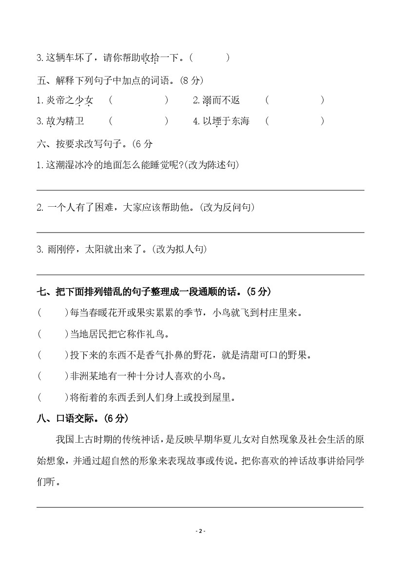 首页 > 全部 > 单元测试 > 【语文】四上第四单元检测试卷(二