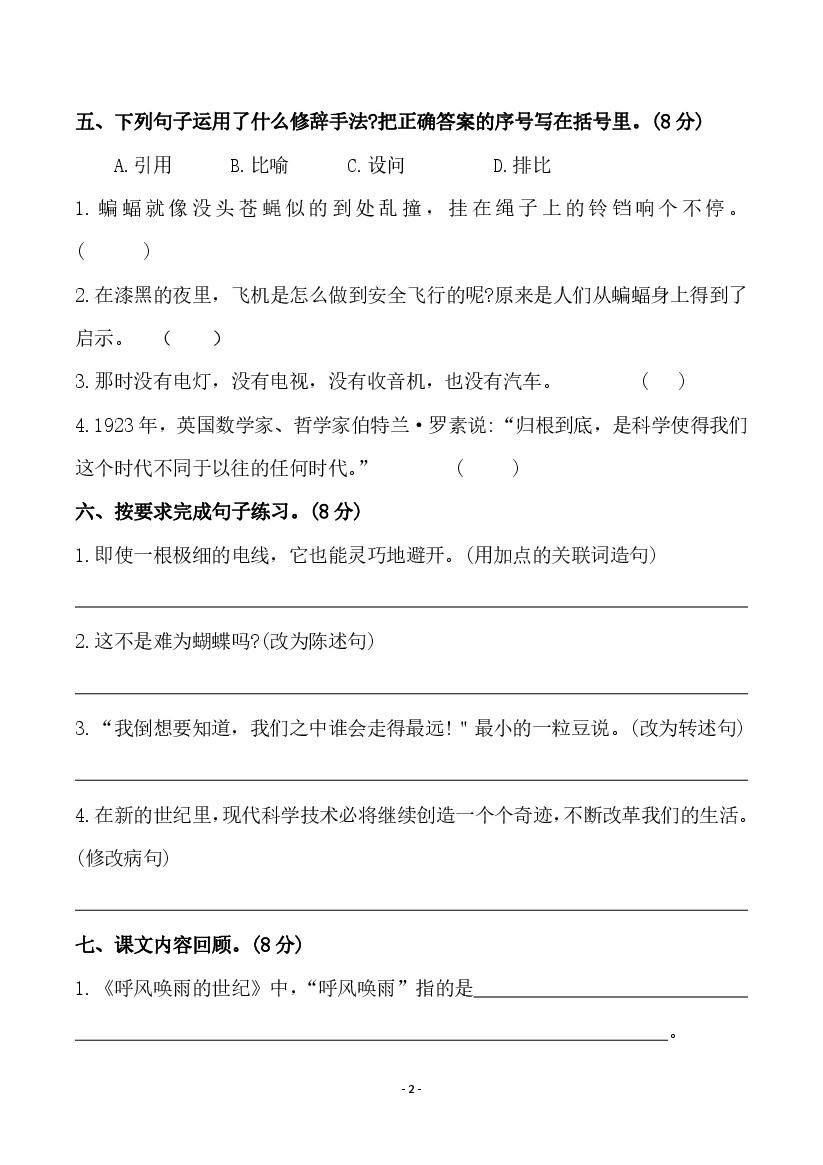 首页 > 全部 > 单元测试 > 【语文】四上第二单元 检测卷二
