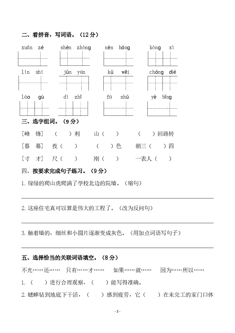 首页 > 全部 > 单元测试 > 【语文】四上第三单元检测试卷(三)