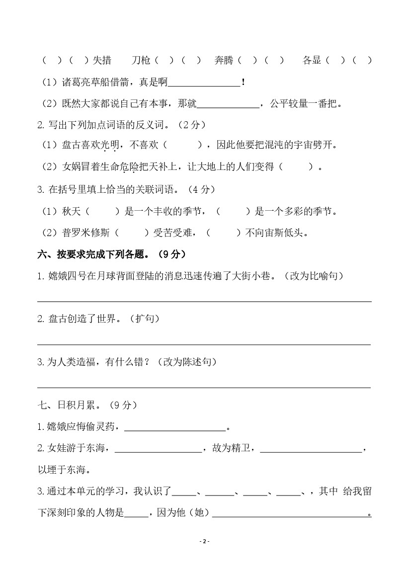 首页 > 全部 > 单元测试 > 【语文】四上第四单元检测试卷(三)