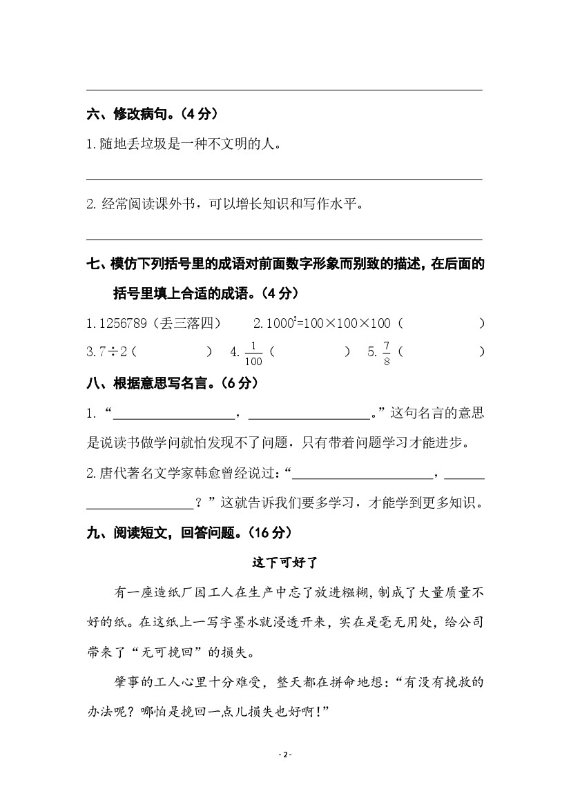 首页 > 全部 > 单元测试 > 【语文】四上第二单元 检测卷一