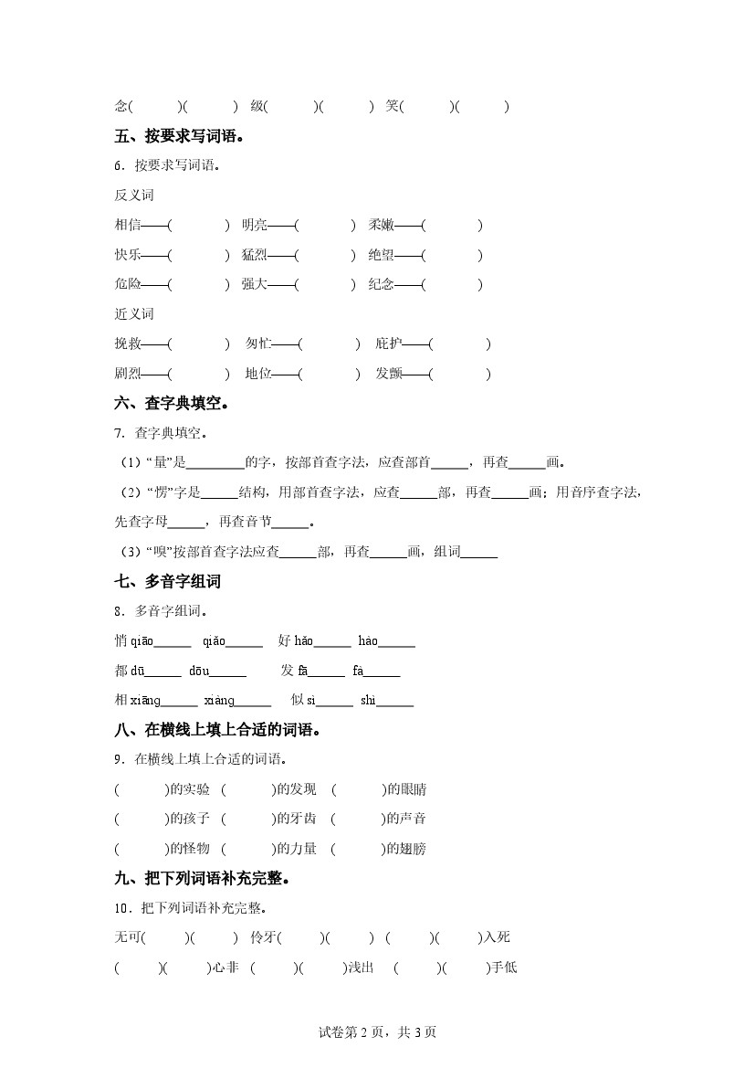 首页 > 全部 > 基础字词 > 统编版语文四年级上册第五单元字词专项练